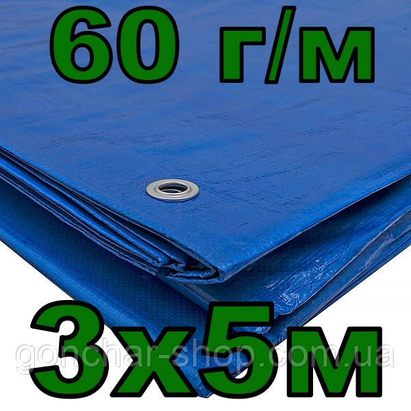 Тент 3х5 м 60 г/м Agrostar тарпауліновий з люверсами полог синій