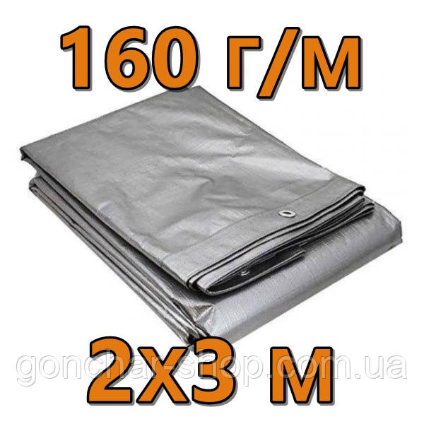Тент 2х3 м 160 г/м Agrostar від дощу з люверсами полог сірий